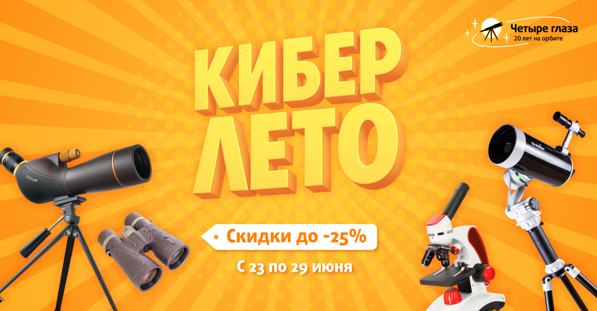 Лето – пора теплой погоды, исследований окружающего мира и ярких впечатлений! Представьте, как вы рассматриваете далекие звезды через мощный телескоп, наблюдаете за редкими птицами и дикими животными в бинокль, изучаете живописные пейзажи с помощью зрительной трубы или отправляетесь на охоту с высокоточным дальномером в руках. А может, вы мечтаете устроить семейный пикник с микроскопом, чтобы вместе со своими детьми изучить удивительный мир насекомых и растений? Все это станет возможным с качественными оптическими приборами от магазина «Четыре глаза», которые совсем скоро станут еще доступнее!